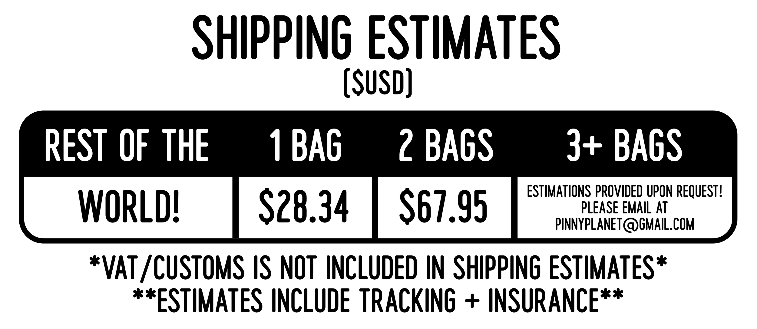 If you plan to order 3+ bags, shipping estimates can be provided upon request! Please email me at pinnyplanet@gmail.com to inquire!